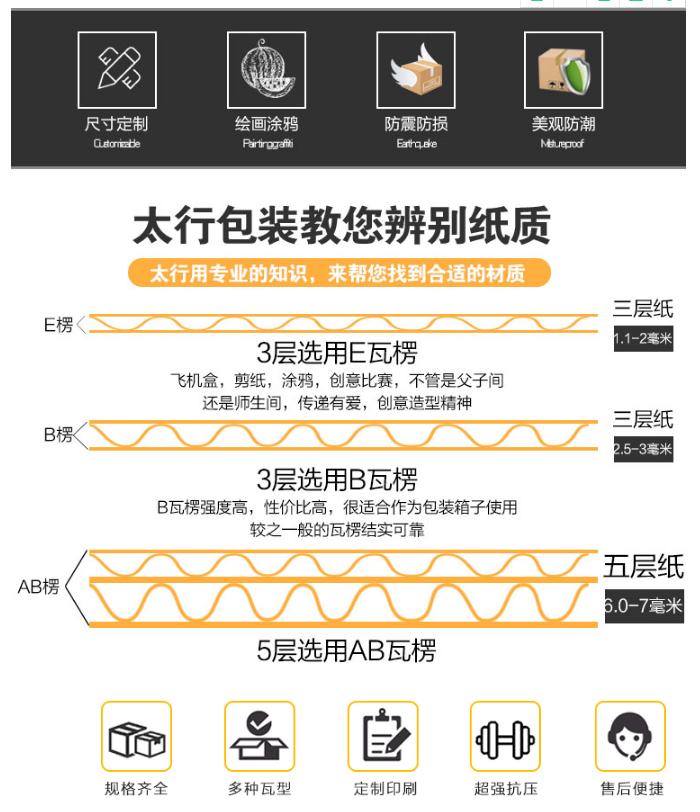 無錫太行包裝各類進出口紙包裝產品、瓦楞紙箱產品、天地蓋紙箱產品廣泛應用于商貿流通業、機械制造業、電信通信業、能源化工業、醫療設備業、快遞運輸倉儲業、電子科技業、食品建材業等3200個細分行業......